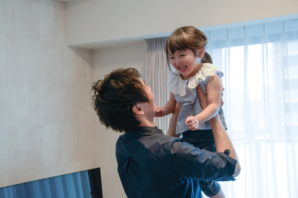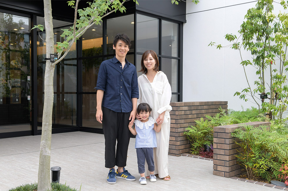 ご夫婦ともにお仕事をされているAご夫妻にとって、通勤に便利な都心立地は、マイホーム選びの重要なポイントでした。現在、ご主人は自転車で10~15分、奥様は電車で1駅と、お二人揃って職住接近を実現されています。普段お子様を保育園に送るのはご主人、お迎えは奥様、買い物も分担など、子育ても家事も二人三脚のご夫妻。「ここは、スーパーやドラッグストアが2~3分圏内なので、仕事帰りに毎日立ち寄れます。名古屋駅や栄にもパッと行けるので買い物はとても便利ですね。都心でありながら、静かで緑が多い環境も気に入っています。休日には、近所の名城公園にテントとお弁当を持って遊びに行きます。」