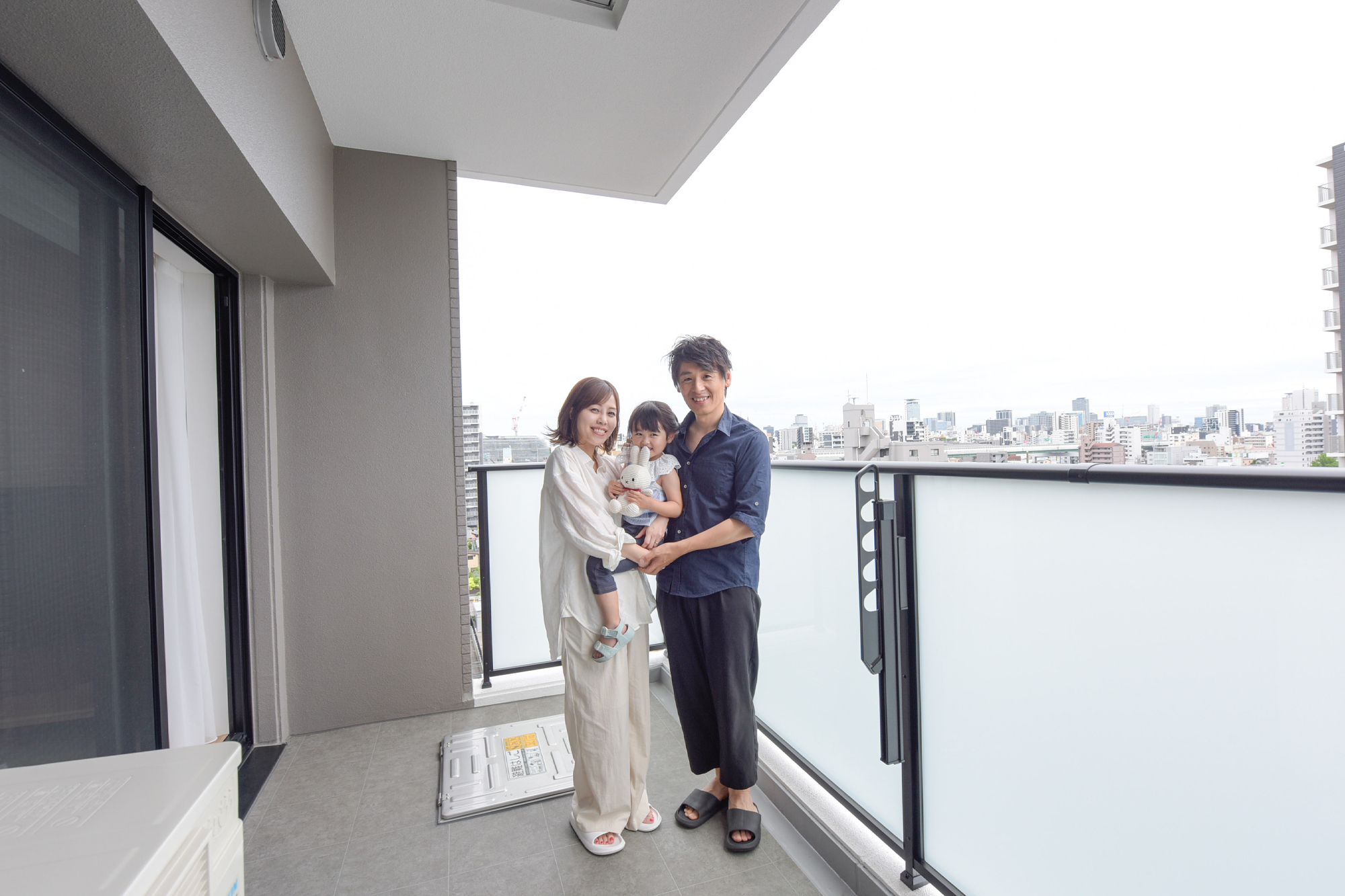 毎日自転車を使うご主人は、共用部のサイクルポートが便利だと言います。「大人用の自転車2台と子ども用の補助付き自転車1台を一緒に置いています。ラック式と違って、出し入れがしやすいので助かりますね。」朝起きていちばん最初に、リビングの窓際でストレッチをするというご主人。「天気が良い日にカーテンを開けたときの気分が最高で、買って良かったと感じます。」大きな窓の外は奥行2mの広々としたバルコニー。そしてその先には、名古屋都心の大パノラマが広がっています。「これからバルコニーにデッキを敷いて、アウトドアリビング風にしてみたいと思っています。」A家のプレディアライフは、まだ始まったばかりです。
