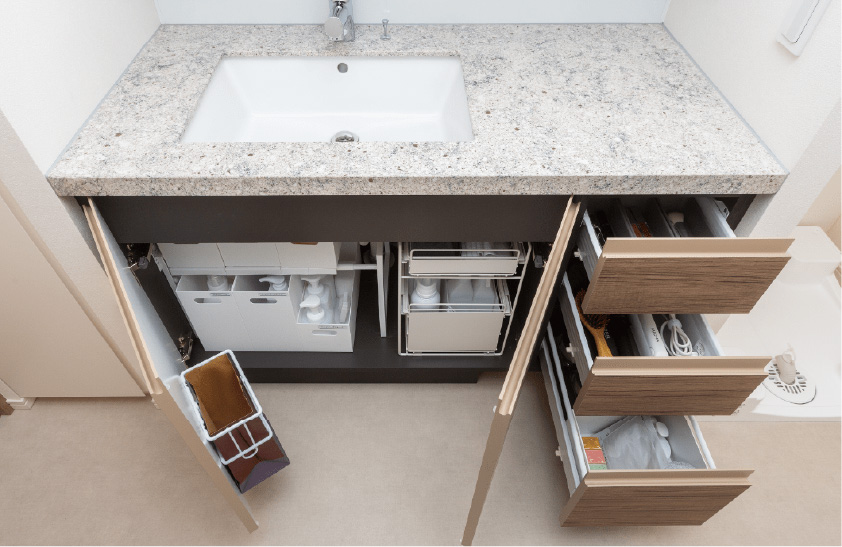 ウォークインクローゼットの他、キッチンまわりや洗面化粧室まわりにも