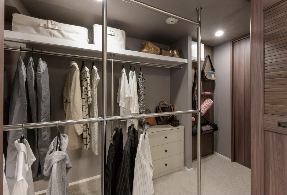 また、物件が根岸森林公園に近く、公園を普段使いするアクティブなライフスタイルを想定し、収納にもこだわりました。ビッグウォークインクロゼットは収納力が高いので、公園で遊ぶレジャー道具がたっぷりと収められるだけでなく、廊下側からも出入りできるようにし、使いやすさにもこだわりました。それ以外にも、プレディアならではの収納ラインナップ「Uストレージ」の中から、この街の暮らしにふさわしい収納を採用しています。