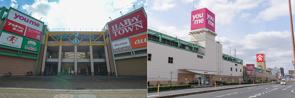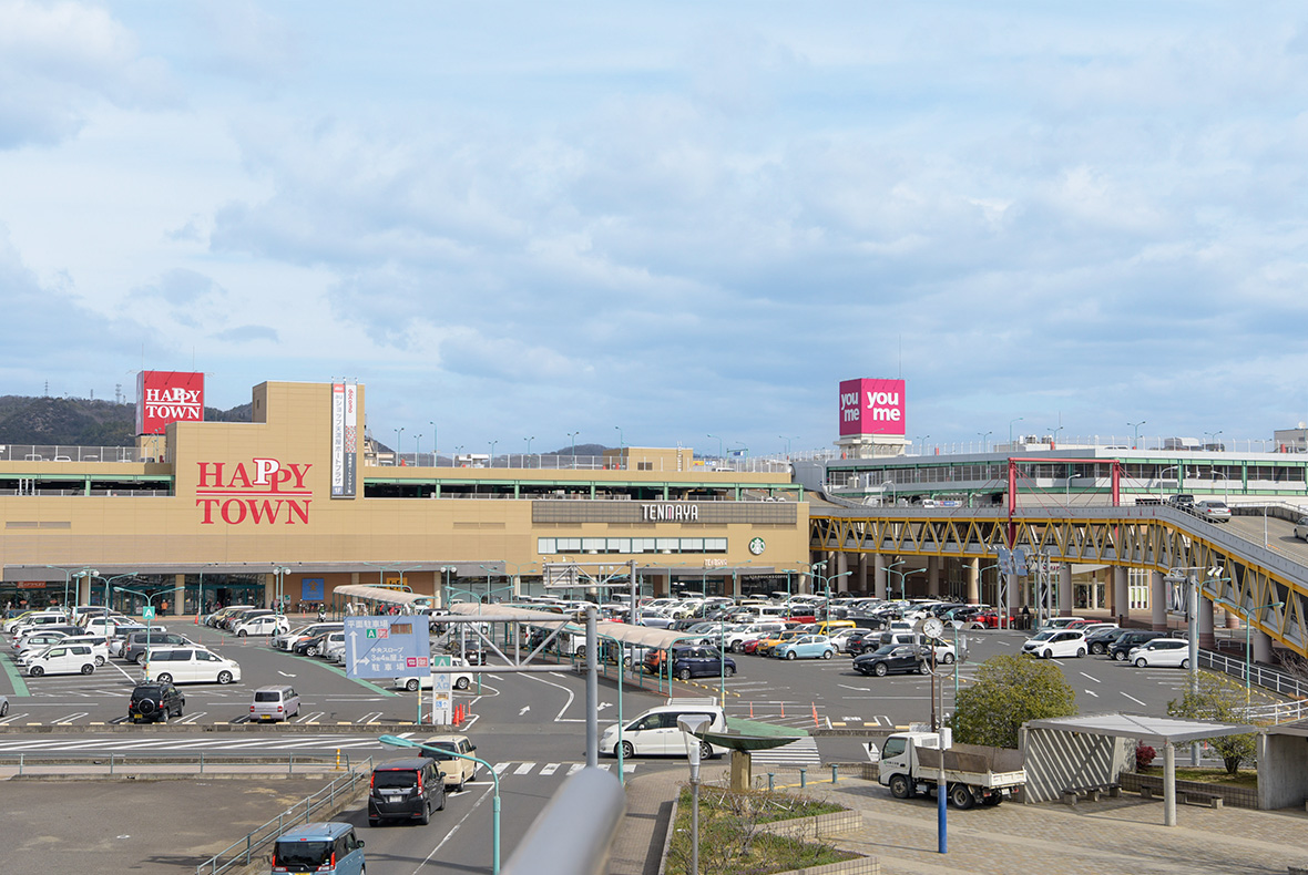 スタート地点は「ポートプラザ」。「天満屋ハピータウン」と「ゆめタウン福山」という2つの大型商業施設が連なる福山最大級の複合ショッピングモールです。「福山」駅南東に位置する国道2号線と国道313号線の交差点、という福山の中心市街地にありながら、7万平米を超える敷地に約2,700台収容の駐車場を備えた、まさにこの街を代表する商業スポットです。