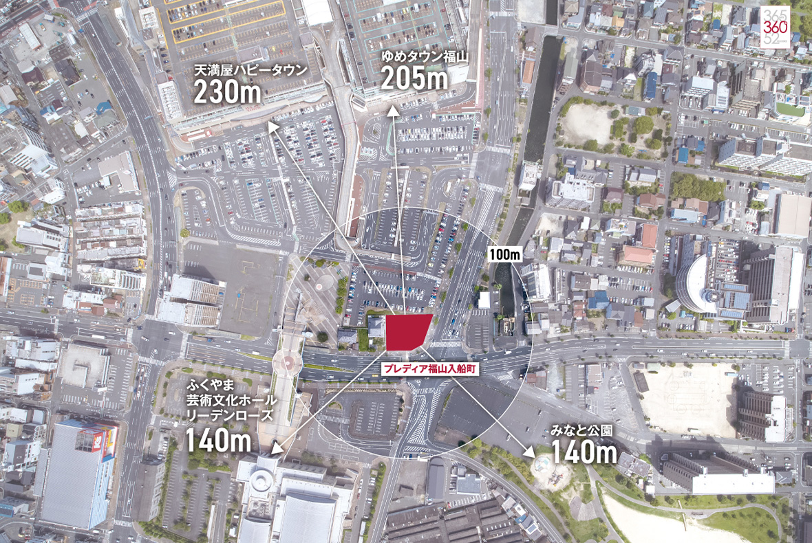 この「ポートプラザ」の南側の隣接地に誕生する「プレディア福山入船町」は、福山初のJR西日本プロパティーズの新築分譲マンションです。全邸南向き、ワンフロア4邸、角住戸率50%の全52邸。開放感溢れる東南角地で、周辺には公園も多く、通りの向かいは文化施設「リーデンローズ」。徒歩5分以内で街の賑わい、緑の潤い、文化の香り全てが享受できます。