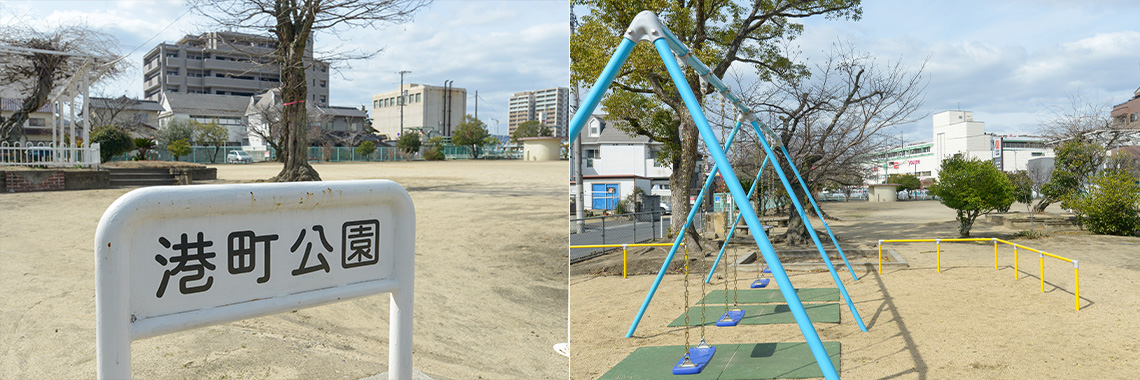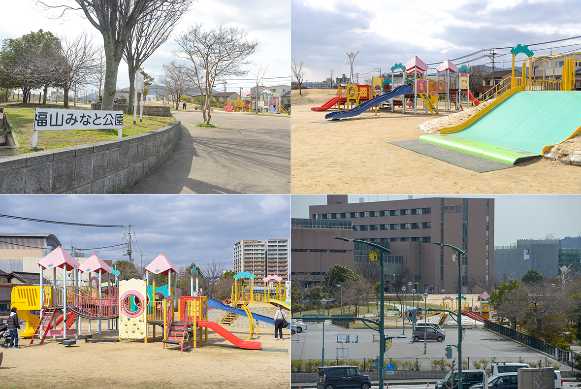 「リーデンローズ」の東側に広がる「福山みなと公園」は、幅広すべり台など小さなお子様が楽しめる複合型遊具や、ピクニックなどに最適な広場がある公園です。現地からは徒歩3分で、お隣は福山市立大学。この公園や大学も現地バルコニーから見渡せます。「ポートプラザ」の近くには「港町公園」もあり、公園や自然が多い緑豊かな住環境もこの街の魅力です。