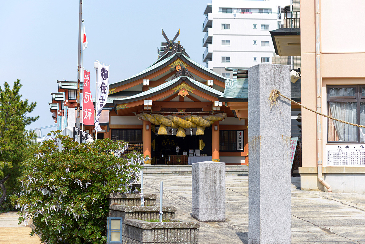 対岸の「住吉神社」は広島三大祭の一つ「すみよしさん」で有名な神社です。全国テレビで放送されることもあるこのお祭りには、毎年約2万人が訪れ、巨大な茅の輪(かやのわ)を3回くぐって災厄のお祓いをする「茅の輪くぐり」や、人形(ひとがた)に自分の身がわりとして罪やケガレを移し、灯篭に乗せて本川に流す「人形流し」などが行われます。