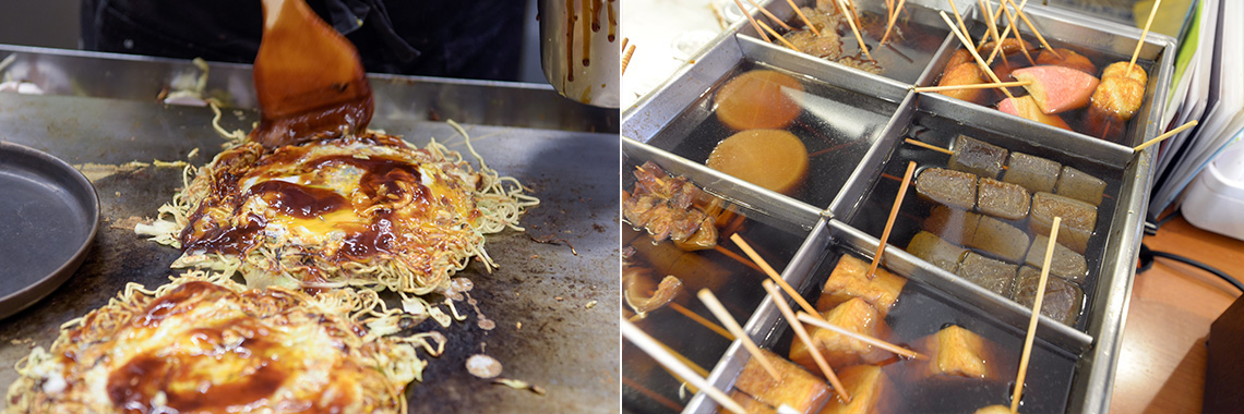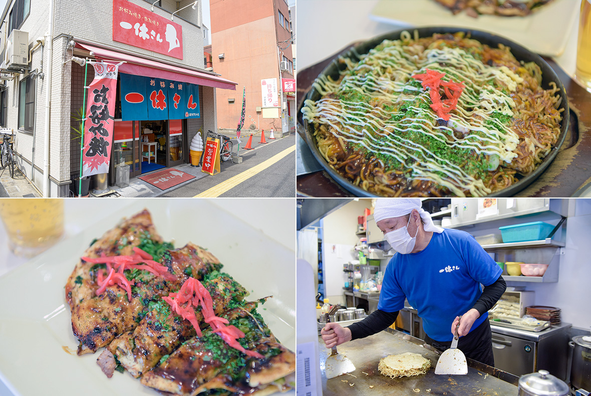 「舟入本町」電停付近には、地元の方々から長く愛されてきた素敵なお店が沢山あります。電停前の「一休さん」は、この場所で親子4代受け継がれてきたお好み焼き屋さん。常連のお客様も多く、昼間から満席になることも。陽気なご主人が目の前で焼く種類豊富なお好み焼きはもちろん、おでんなどの別メニューもあるので、家族で気軽に出掛けられます。