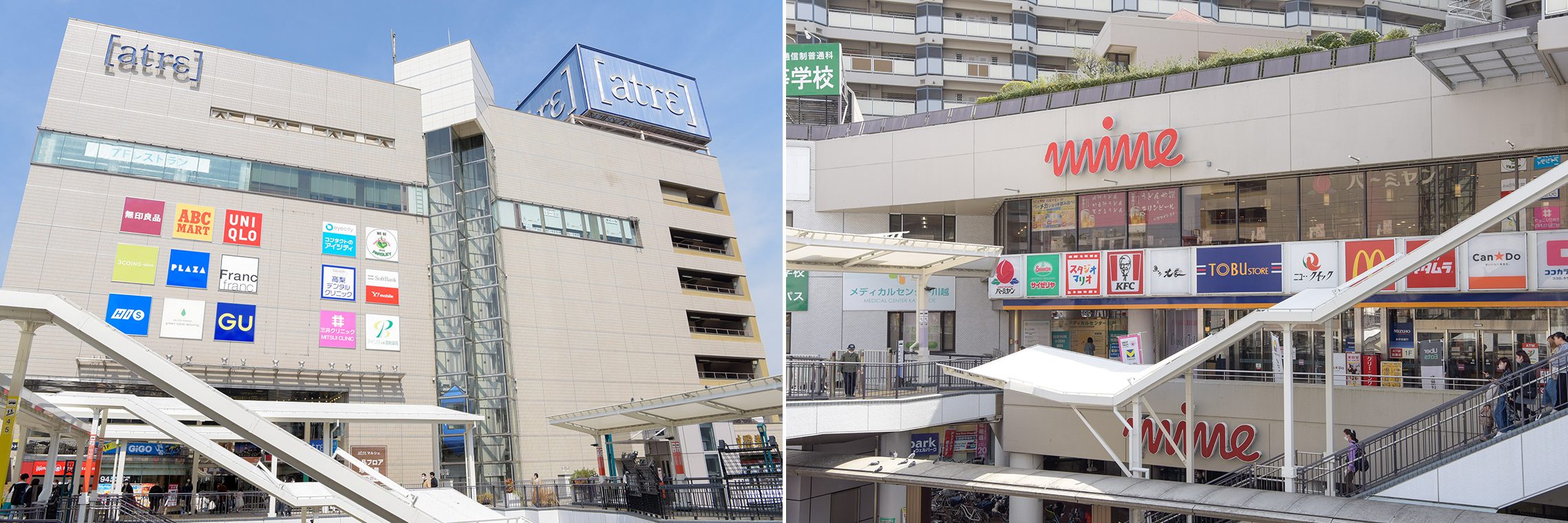 スタート地点は、東武東上線・JR川越線の「川越」駅。東武東上線では全ての急行が利⽤でき、「池袋」駅まで直通約30分。都心へのアクセスもスピーディーで快適です。駅ビル「EQUIA」をはじめ、「アトレ」「マイン」など駅周辺には多彩な大型商業施設が集積し、ショッピングやお食事も思いのまま。駅前は多くの人で賑わい、活気に溢れています。